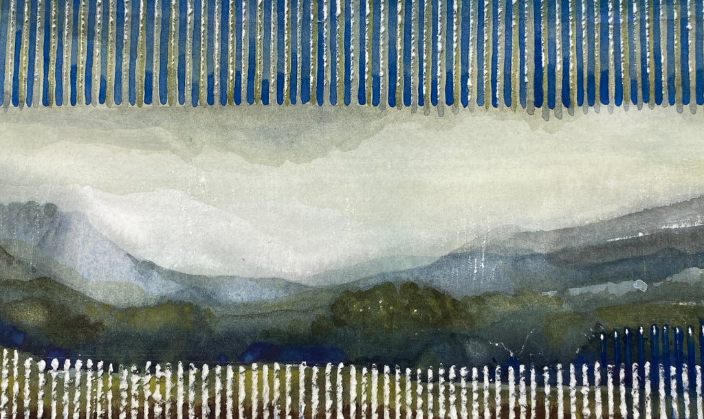 This watercolour work "Vignette"  2024 is part of a series of smaller watercolour works exploring the connection between the artist and the landscape.
