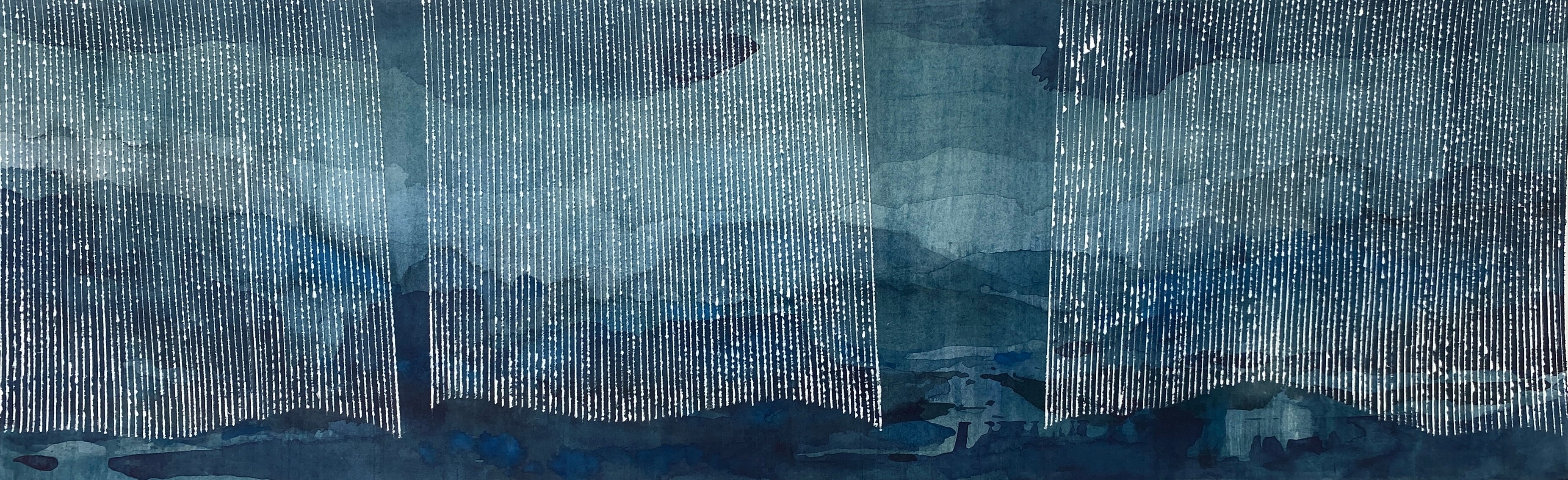 This watercolour work "White Curtains"  2024 is part of a series of smaller watercolour works exploring the connection between the artist and the landscape.