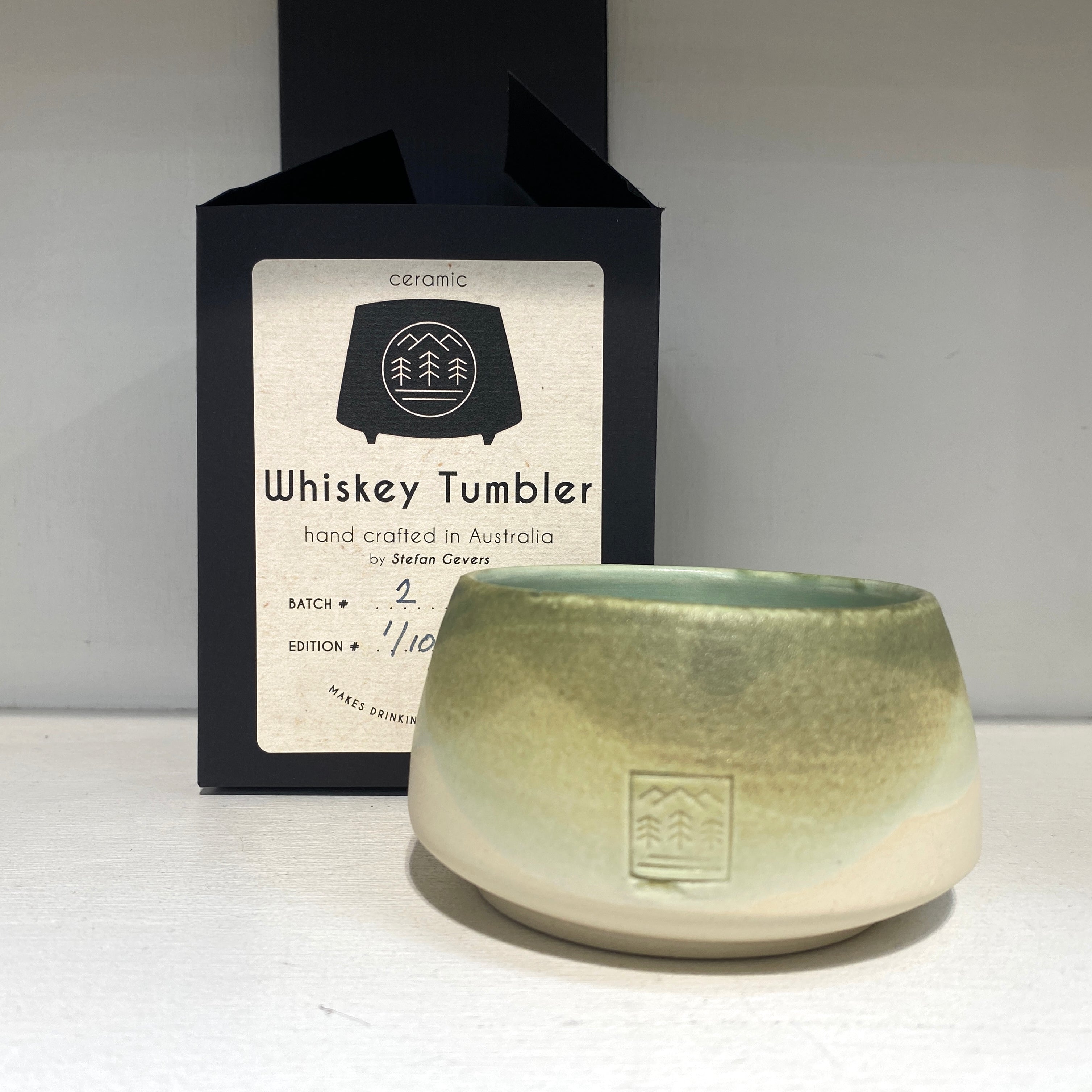 Limited edition handcrafted ceramic whiskey tumblers. Each piece, glazed and shaped by Stefan Gevers in Melbourne is made in small batches and numbered, making it a unique collector’s item. Perfect for whiskey enthusiasts and collectors.