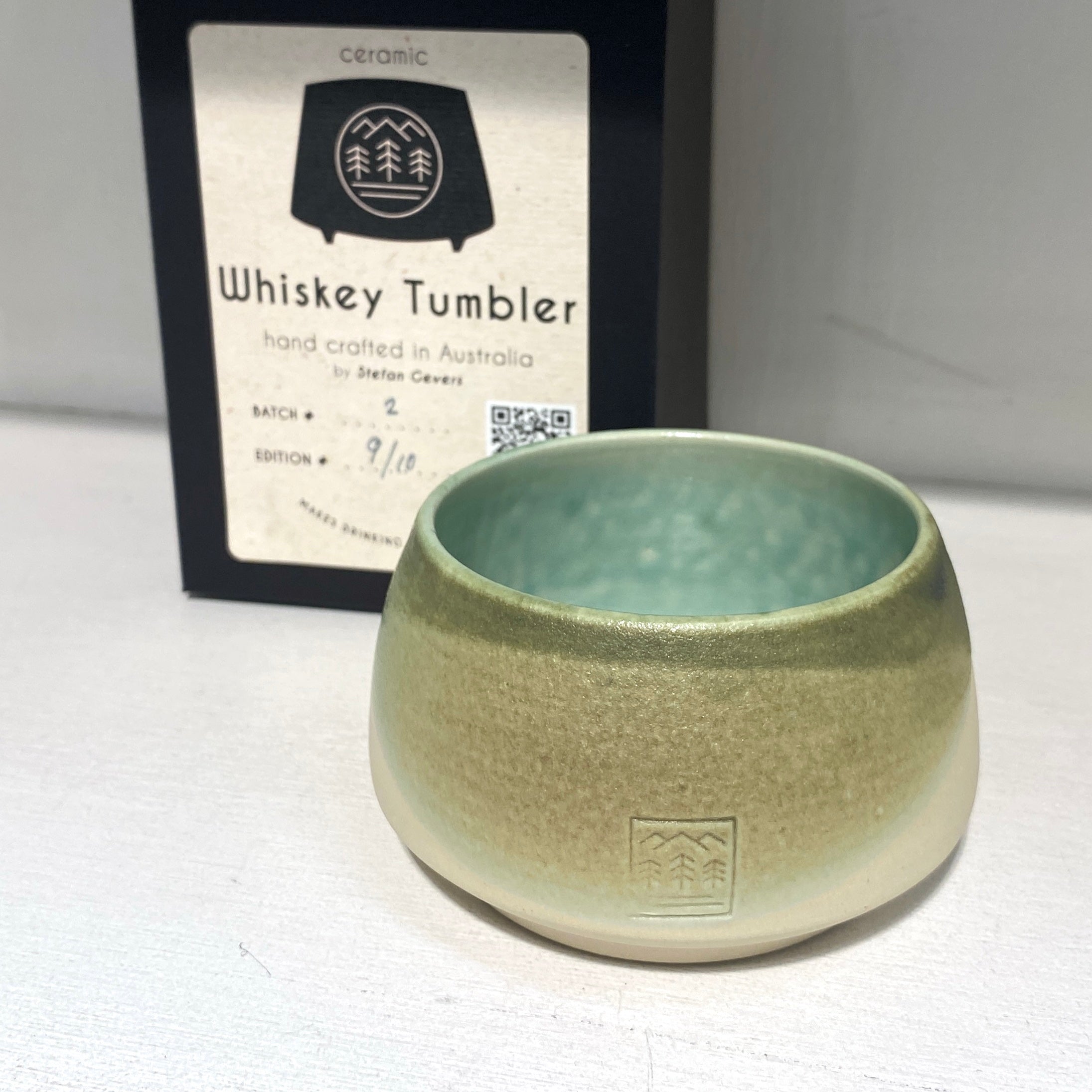 Limited edition handcrafted ceramic whiskey tumblers. Each piece, glazed and shaped by Stefan Gevers in Melbourne is made in small batches and numbered, making it a unique collector’s item. Perfect for whiskey enthusiasts and collectors.