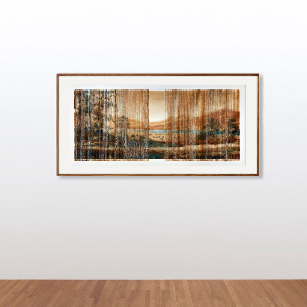 "The interplay of positive and negative space guides us deeper into the narrative of the landscape, focus in on specific locations and bringing to light the invisible elements that contribute to the “bigger picture”. The vertical lines and whitewash serve as a screen or curtain, spotlighting a scene, a place, a viewpoint, while offering a sense of seclusion. Concurrently, it obscures and reveals the past and future. It's a contemplation of our role and obligations within the landscape, with trees as the timeless, silent observers."
