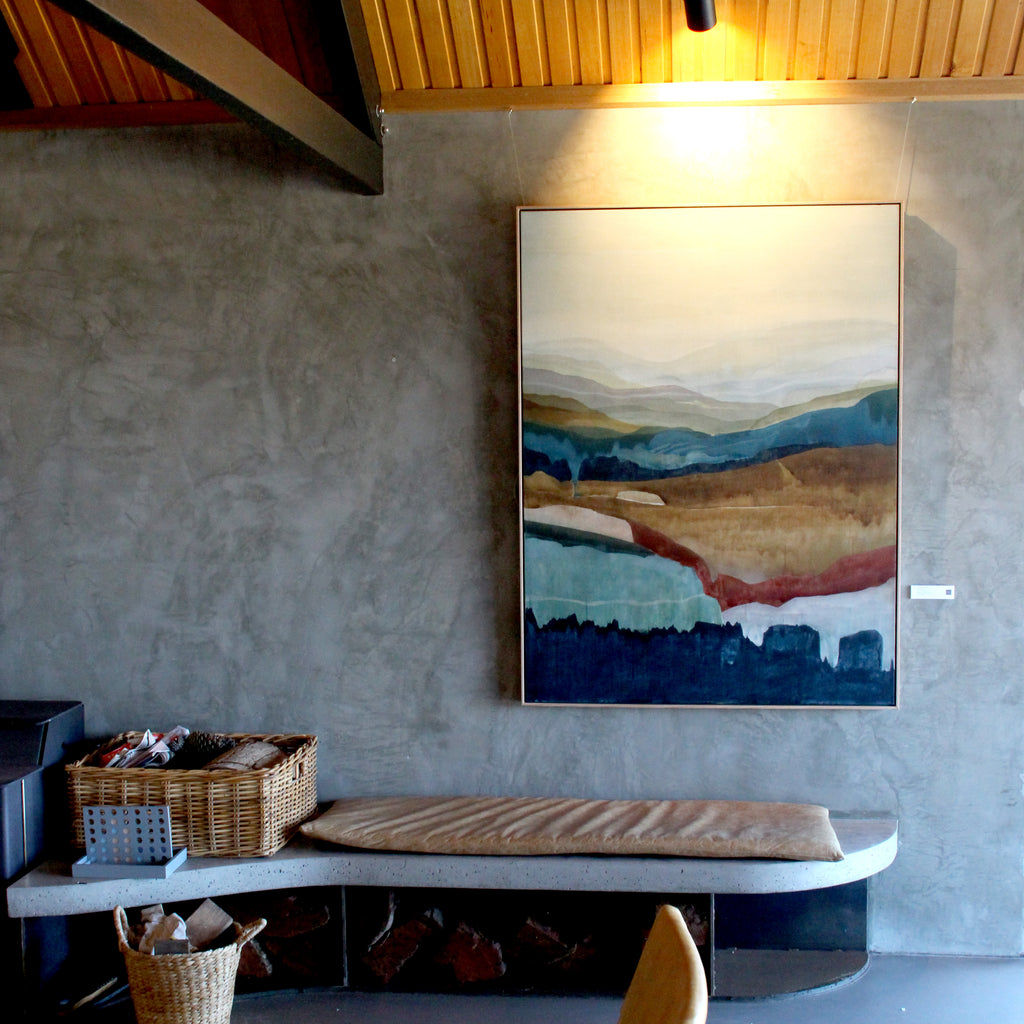 "Stefan's trademark minimalism is evident in his acrylic on canvas originals- the qualities of transparency & abstracted landscapes create a unique and elusive 'moment'. One where you witness natures calm & intensity in one breathe"